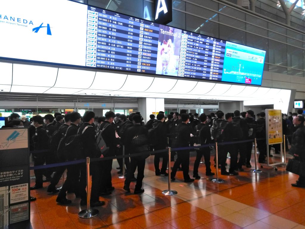 沖縄修学旅行1班(2年1・2・4・7組)が12月4日(木)羽田空港8:25発ANA467便で予定どおり出発しました。