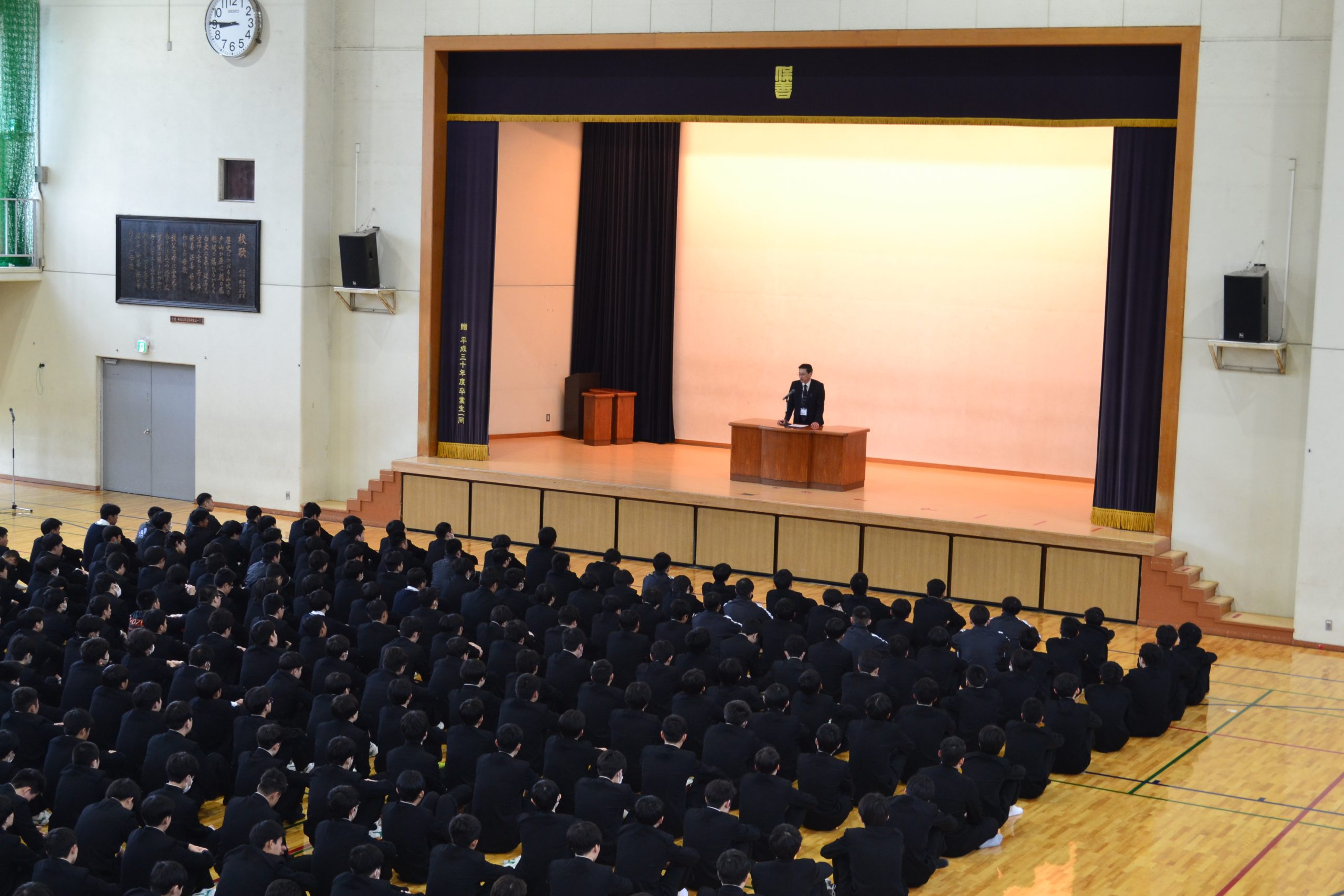 令和年度修了式が体育館で行われました。