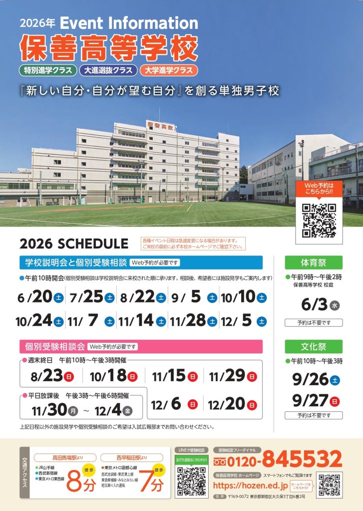 なお、各種イベント日程は変更になる場合がございますので、ご来校の直前にHPの確認をお願いいたします。
